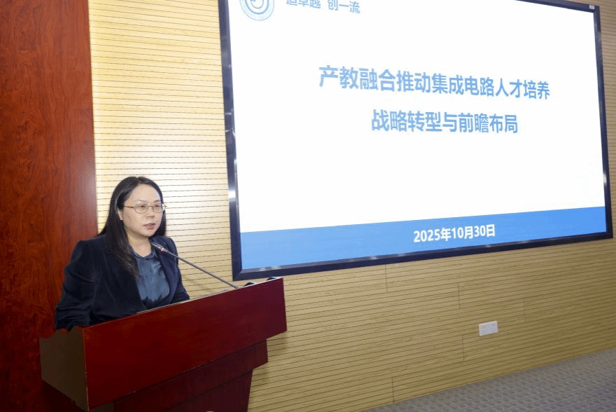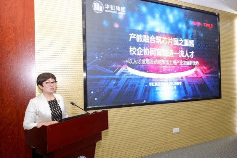 华虹集团党委副书记黄新宇以“产教融合筑芯片国之重器、校企协同育制造一流人才”为题,分享了校企协同育人的迫切需求与成功经验。她介绍,华虹集团通过密切校企导师沟通、项目实战培训人才、联合技术攻关等方式,深度参与人才培养全过程。这种紧密的校企合作不仅为企业精准输送了高素质工程技术人才,也为攻克“卡脖子”技术、筑牢产业根基提供有力的人才支撑。
